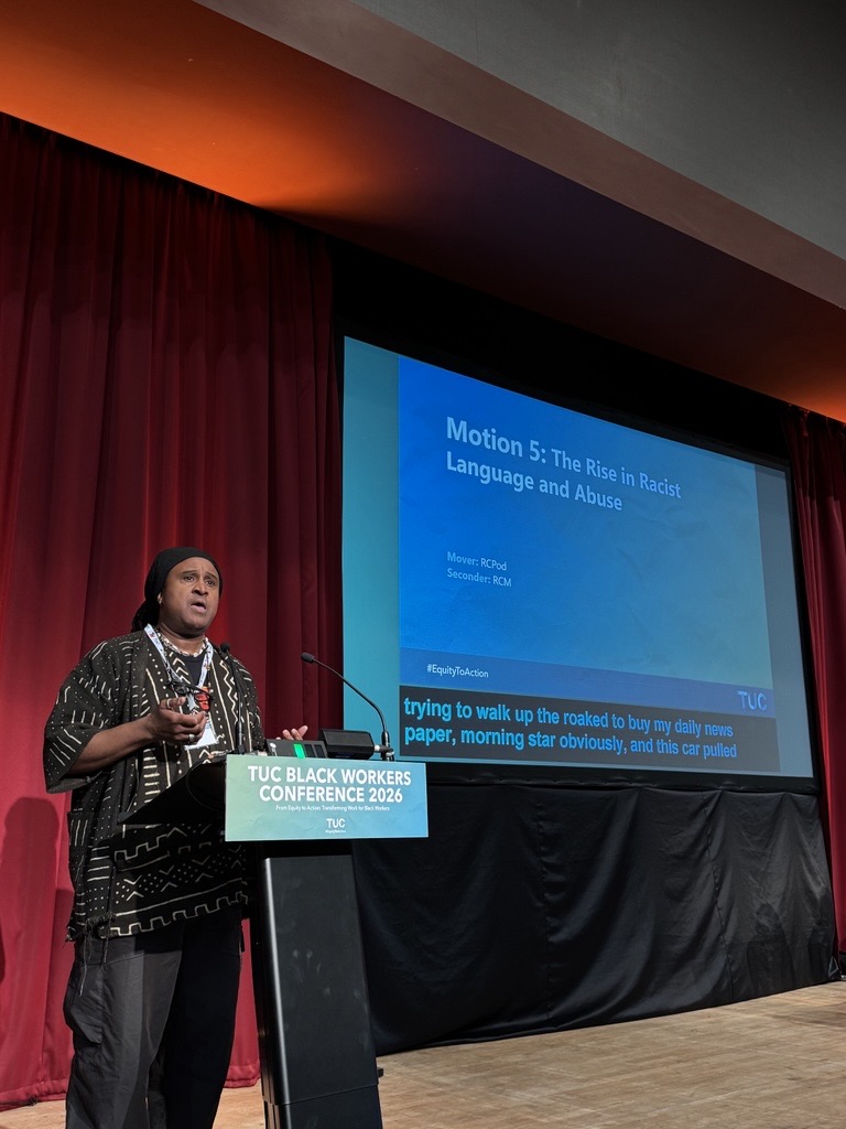 The importance of the union’s race reporting guidelines and Code of Conduct were also highlighted during a seperate motion on the rise in racist language and abuse, which called for accountability from politicians, the media and the trade union movement itself.